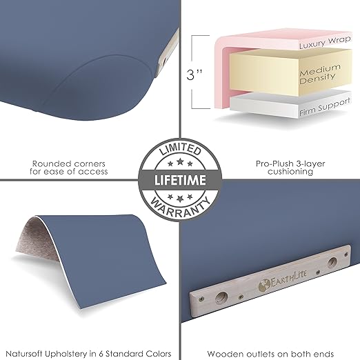 EarthLite Ellora Electric Lift Massage Table, Flat Table Top, Made in USA, 32" x 73, Mystic Blue