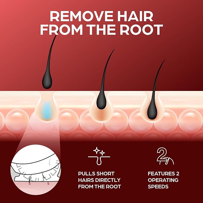 - Two Speeds for Hair Removal – 20 pairs of tweezers deliver 31,000 tweezes per minute. Level 1 offers gentle control for sensitive areas, while Level 2 covers more surface area for quick, efficient results.