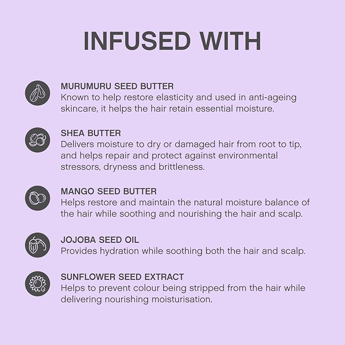 - Hydrating Hair Products: Infused with rich Murumuru and Mango Seed Butter, this hydrating shampoo restores moisture and elasticity to blonde and grey hair