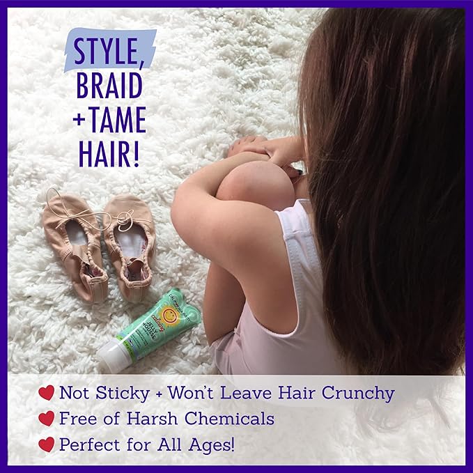 - MEDIUM HOLD - USE FOR STYLING, BRAIDING, OR TAMING FLYAWAY HAIRS: Our kids hair gel for boys + girls is perfect for styling all hair types, including curly, thick, and straight hair. This styling cream for kids won’t leave hair crunchy or sticky.