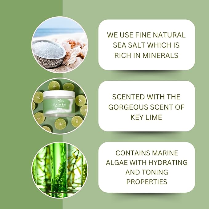 - NATURAL SEA SALT & MARINE ALGAE: Enriched with natural sea salt and marine algae oil, our unique formulation goes beyond exfoliation. The sea salt and marine algae contribute to improved hydration and overall skin condition. Users have reported anti-aging benefits, including a reduction in wrinkle depth, a more unified skin tone, and enhanced skin elasticity. Packed with essential nutrients, this salt scrub not only exfoliates but also moisturizes and nourishes your skin.