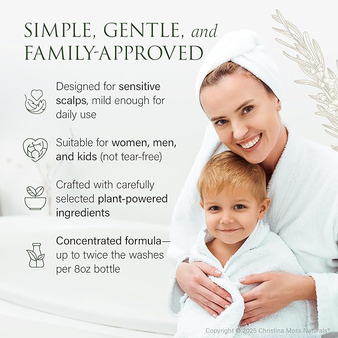 Christina Moss Naturals Shampoo Natural and Organic Ingredients, Sulfate-Free, Paraben-Free, Cruelty-Free, Vegan, Unscented, Responsible Beauty
