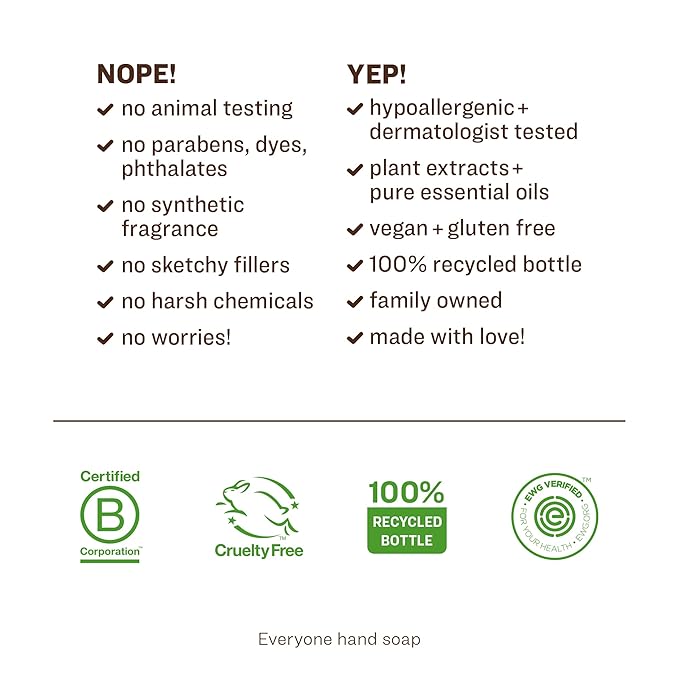 - Clean Promise: GMO free, cruelty free, gluten free, triclosan free, and synthetic fragrance free