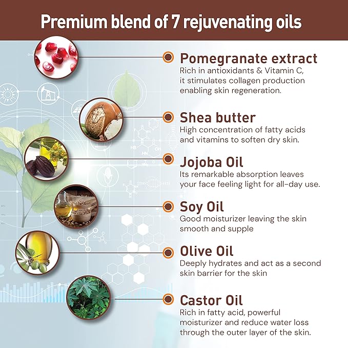 - Potent Natural Ingredients: Our Pomegranate-based herbal moisturizer is rich in antioxidants and Vitamin C that stimulate collagen production. Full of vitamins, such as Vitamin E, and minerals that help to fight oxidative stress of the skin.