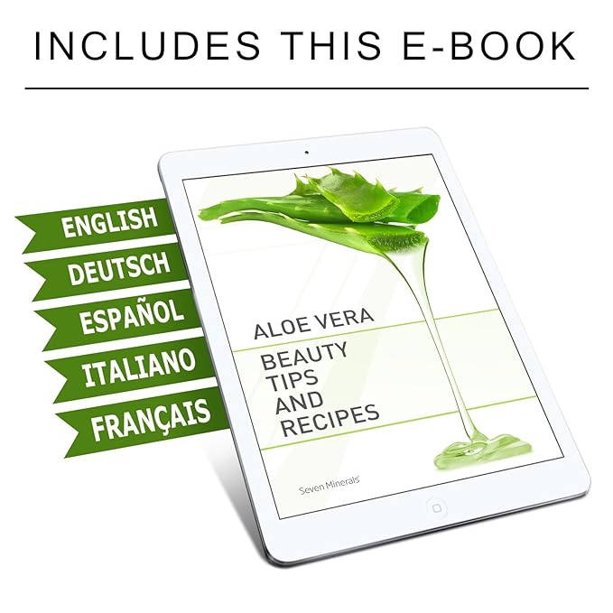 Seven Minerals Organic Aloe Vera Gel from freshly cut 100% Pure Aloe - Big 12oz - HighestQuality, Texas grown, Vegan, Unscented - For Face, Skin, Hair, Sunburn relief