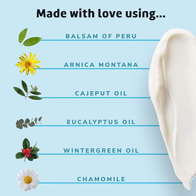 - Active Ingredients : Balsam Peru, Chamomile, Cadjeput, Eucalyptus, Wintergreen,