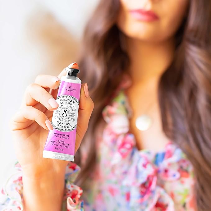 La Chatelaine 20% Shea Butter Hand Cream, Travel Size, Organic Argan Oil, Moisturizing, Nourishing, Repairing, Extra Rich, Non-Greasy, Made in France, Paraben Free, 1 oz/ 30ml (Cherry Almond)