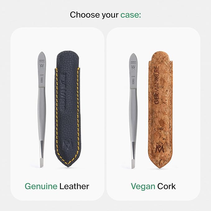 GERMANIKURE Slanted Tweezers in Leather Case - Made in Solingen Germany