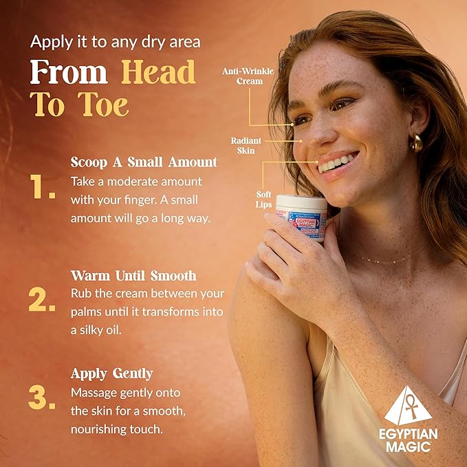 - HYDRATING & REPAIRING: Delivers deep, long-lasting hydration to relieve flaky patches and sensitive areas. Egyptian Magic serves as a body moisturizer, a soothing cream, and an all-purpose solution for dryness on hands, face, and body.