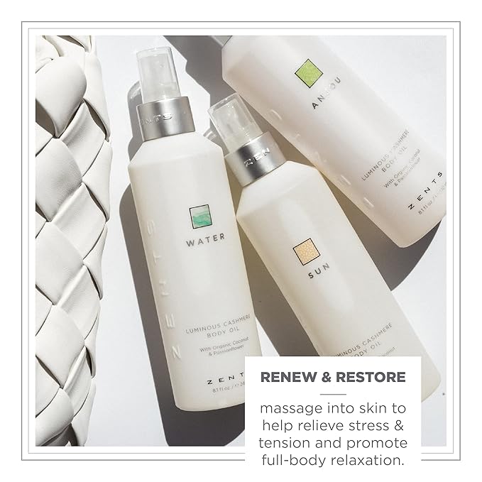 Zents Luminous Cashmere Body Oil (Fragrance-Free) | Moisturizing Body Oil with Vitamin E & Organic Coconut Oil | Softens & Smooths Skin | 8 fl oz
