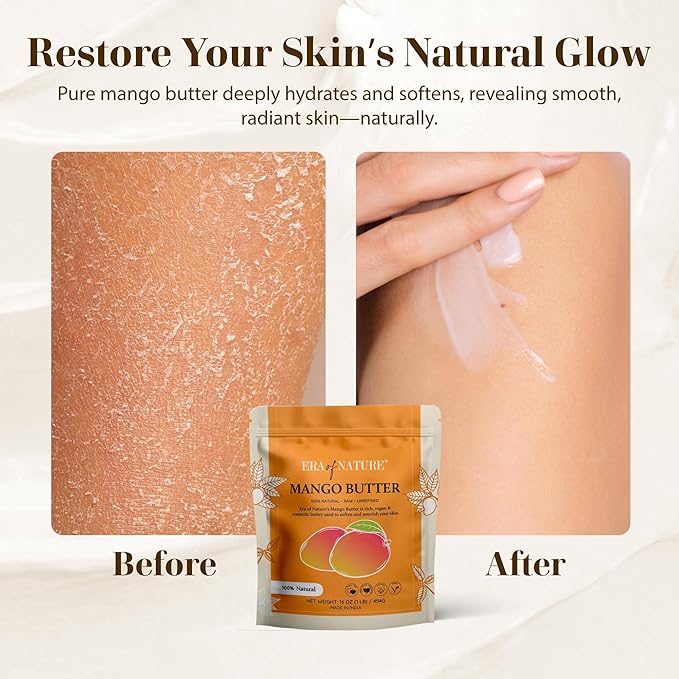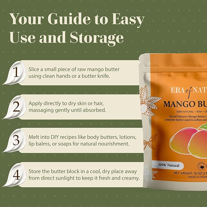 - PREMIUM RAW MANGO BODY BUTTER: Crafted from pure, unrefined mango seeds, this organic unrefined mango butter retains its thick, creamy texture. Unlike melted alternatives, our raw butter is sliced to preserve nutrients—perfect for your body butter making kit or lotion bar creations.