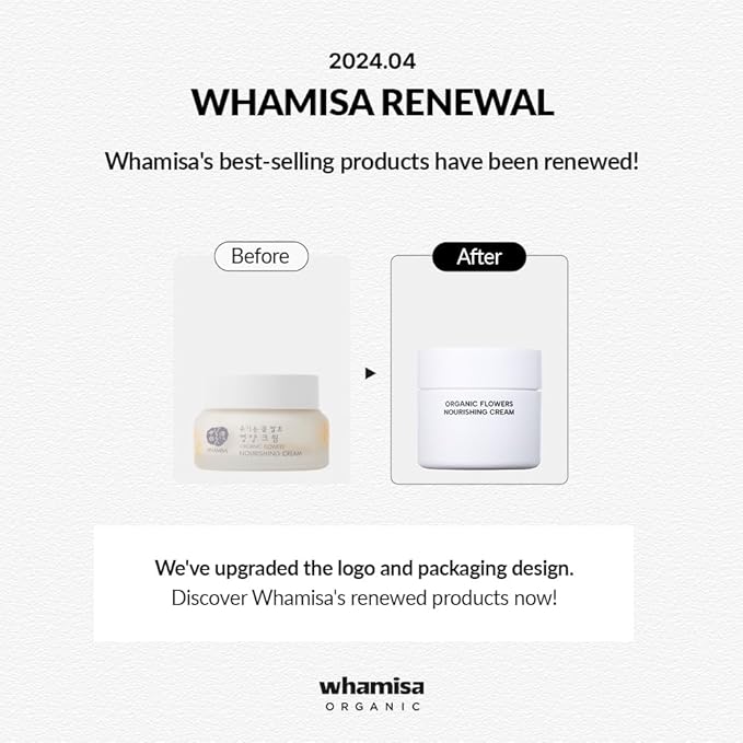 Whamisa Organic Flowers Nourishing Cream, 95.2% Organic, Waterless Formula, Fermented Postbiotic for Deep Hydration & Soothing, Moisturizing (50ml)
