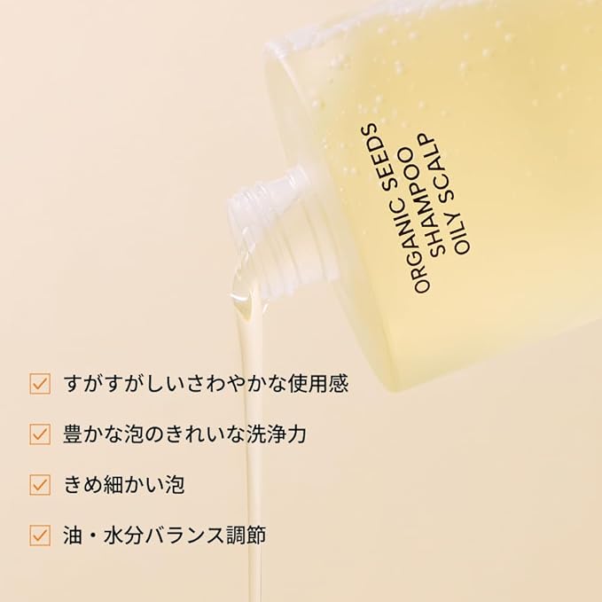 Whamisa Organic Seeds Shampoo for Oily Scalp, Fermented Postbiotic Formula for Refreshing Cleanse, Balanced Oil Control, Scalp Conditioning, Dandruff Care (490ml)