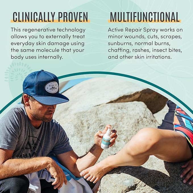 - DAILY SOLUTION FOR SKIN CARE: ACTIVE Skin Repair works on cuts, rashes, sunburns, and other skin irritations. The power of an first aid kit in a 3oz spray bottle