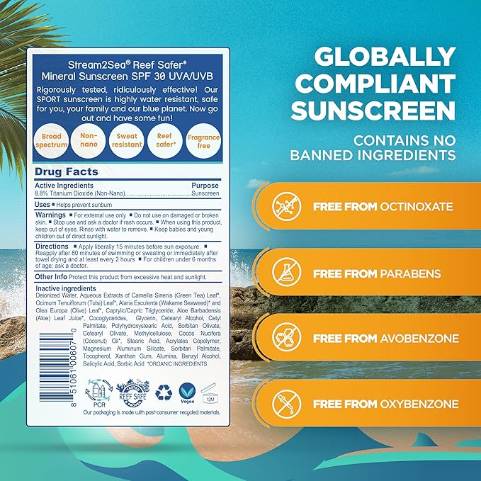 STREAM 2 SEA SPF 30 Mineral Sunscreen Biodegradable and Reef Safe, 1 Fl oz Travel Size Pack of 3, Paraben Free Non Greasy and Moisturizing Mineral Sunscreen For Face and Body Against UVA and UVB