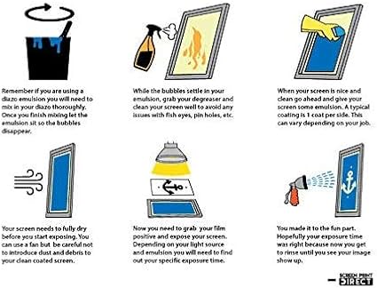 - Pre Mixed and Ready to Use - Take the guess work out of your silk screen printing kit with our ready to use emulsion. No mixing required with pre-sensitized water resistant emulsion. Make sure to use a good emulsion scoop coater to get clean and even coverage.