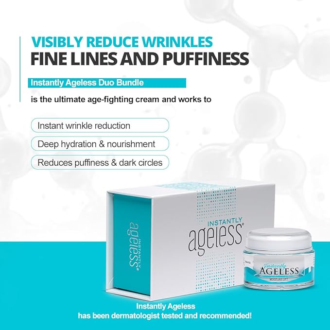 - Ultimate Anti-Aging Duo: Unlock youthful radiance with our Duo Lift Bundle—a powerful combination of Instantly Ageless Facelift in a Box and the best face moisturizer for aging skin. This dynamic pair delivers visible instant results, smoothing fine lines and offering deep hydration.