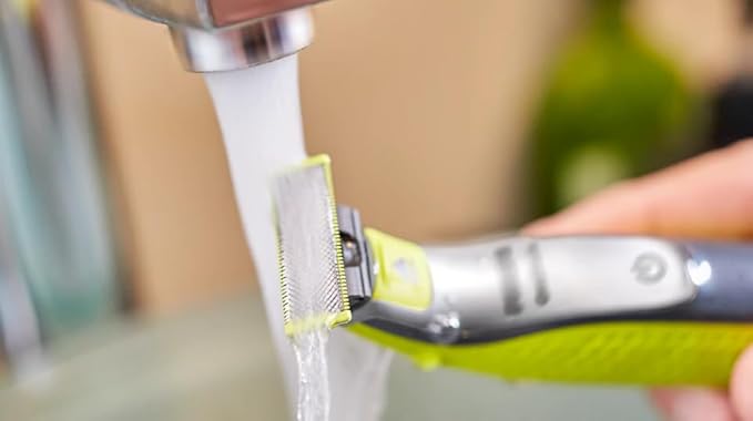 - BODY: Use the click-on skin guard for extra protection on sensitive areas or use the body comb (3 mm) for an even trim on your body.Rechargeable Li-Ion battery delivers 60 minutes of constant performance after an 4-hour charge (2-pin plug).Comes with 2 blades & travel pouch. The replaceable OneBlade blades lasts up to four months*. Buy your new OneBlade blades at Amazon!.Water-resistant: Use wet & dry.Looking for a close shave? Take a look at a Philips electric shaver.This product comes with a two-pin shaver plug for charging purposes