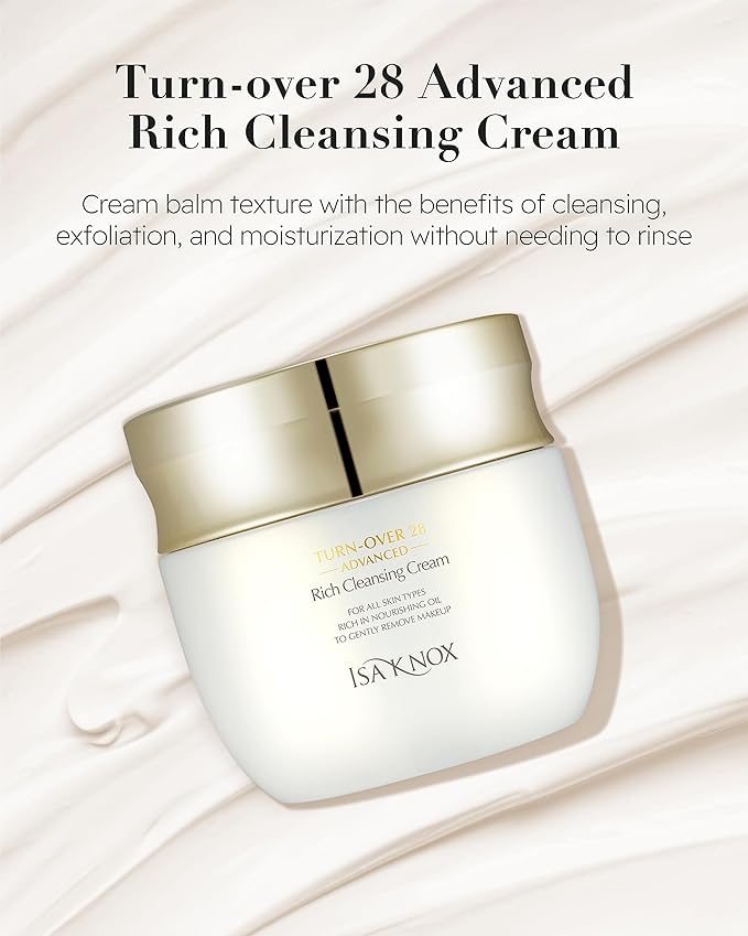 - ISA KNOX TURNOVER 28 ADVANCED RICH CLEANSING CREAM is specifically designed to promote a 28-day turnover cycle, gently removing impurities and makeup while providing a nourishing and oil-enriched texture to prevent dryness.