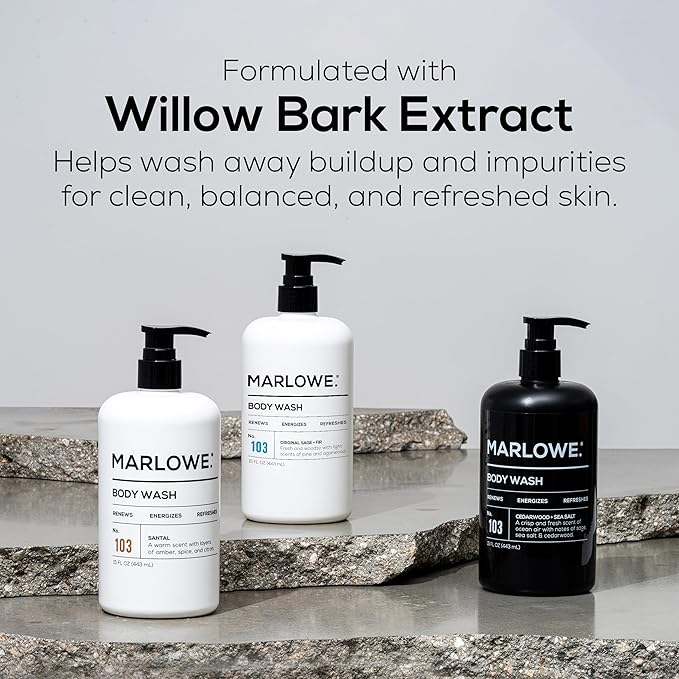 MARLOWE. No. 103 Body Wash 16 oz Pump, Original, Energizing & Refreshing Shower Gel with Willow Bark & Green Tea Extracts, Cleanses, Moisturizes, Smooths & Nourishes, Fresh Pine & Agarwood Scent