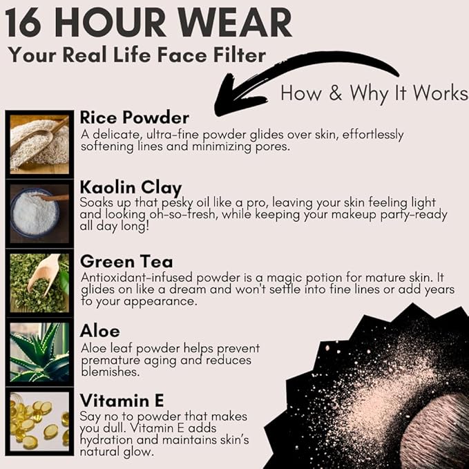 - Flawless, Never Cakey: Use a fluffy brush to achieve a natural, soft-matte finish that locks in makeup all day without feeling heavy or drying.