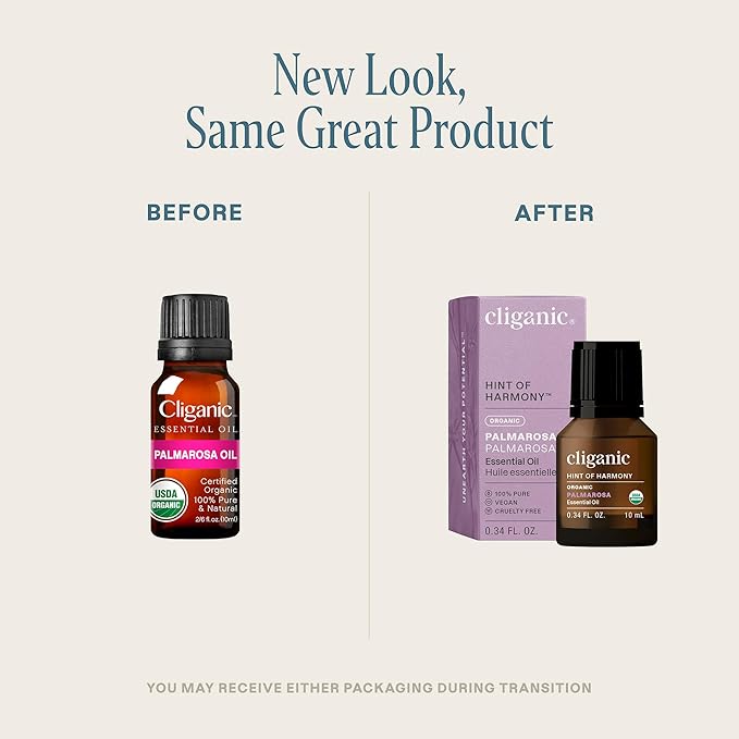 Cliganic Organic Palmarosa Essential Oil, 100% Pure Natural Undiluted (10ml), for Aromatherapy | Non-GMO Verified (Packaging May Vary)