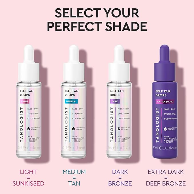 - Tanologist Self-Tan Drops are perfect for both face and body tanning, offering a customizable, streak-free tan without the fake tan smell. Achieve your ideal shade with no mess