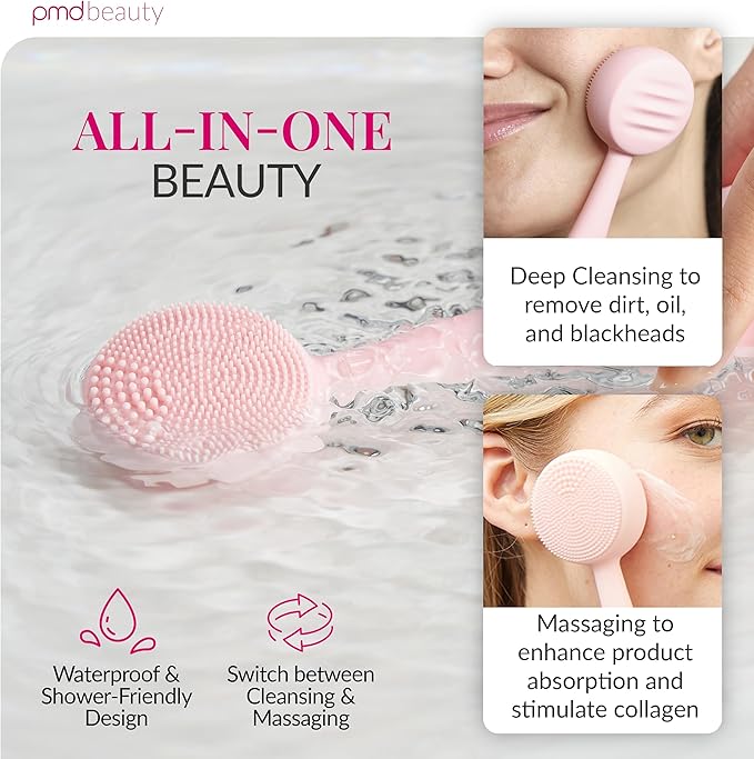 PMD Beauty: Electric Facial Cleansing Brush - Smart Facial Device with Silicone Brush & Anti-Aging Massager, Blush