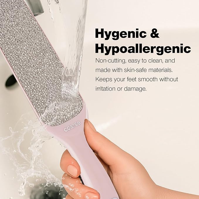 - EASY TO CLEAN AND HYPOALLERGENIC – Our premium foot scraper for dead skin is made of hypoallergenic and quality components, has a non-cutting finishing, cleans easily and is also very sanitary
