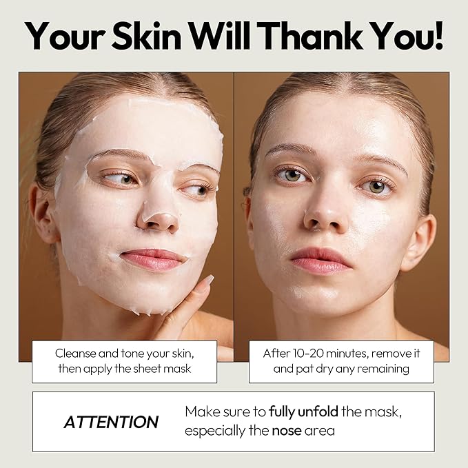 - HOW TO USE - After cleansing and toning, unfold a single sheet and gently spread over face avoiding the eye and mouth areas. Leave on for 10-20 minutes and remove mask, gently patting remaining serum until it is fully absorbed