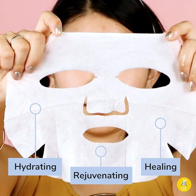 - 😌 RAYON MATERIAL that is silk-like, breathable and cool to the touch. This soft material is drenched in refreshing, hydrating essence and adheres to the skin perfectly. Leave sheet mask on for 10-15 minutes so your skin is ultra nourished!