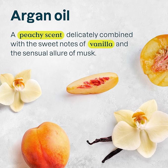 - ARGAN OIL: A soft, comforting fragrance where juicy peach blends with sweet vanilla, leaving skin delicately scented. Perfect as a bathroom hand soap or kitchen sink use.