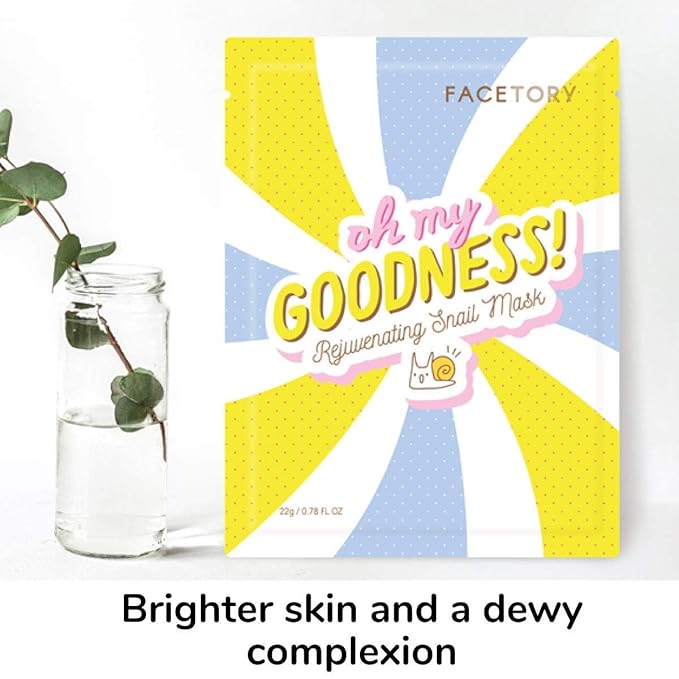 FACETORY K Beauty Face Mask Skin Care - OH MY GOODNESS REJUVENATING SNAIL Sheet Mask with Snail Essence & Hyaluronic Acid | Hydrate, Soothe, Seal in Moisture (10 Pack)