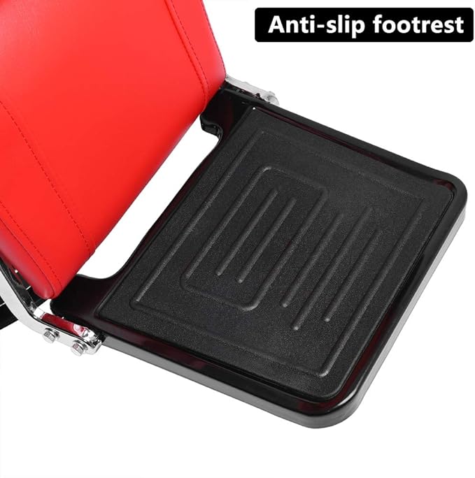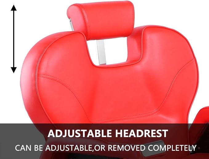 - 【Multifunctional & Classic fashion design】Our chair features pull-up head support, angle adjustable back and footrest, heavy duty hydraulic pump. It fits all types of people in different heights. Advanced PVC leather, durable and flexible, can create a luxury appearance in the salon. Red color makes it appear fashionable and modern, which will definitely attract large groups of customers for your barber pub