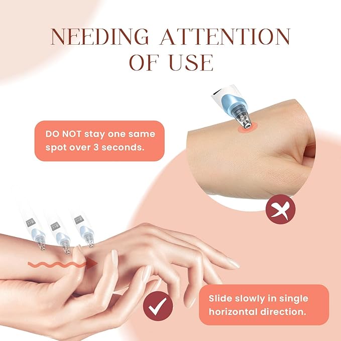 - 【Usage Tips】–Beforea using the vacuum pore cleaner , please use a hot towel or facial steamer to open your pore.To avoid facial bruising, do not stay on one area for more than 3 seconds. Please follow the manual steps to avoid damage to your skin.just gentlely slide the pore vacuum up and down in one direction . If you have any questions about the blackhead removal, you can contact us at any time.
