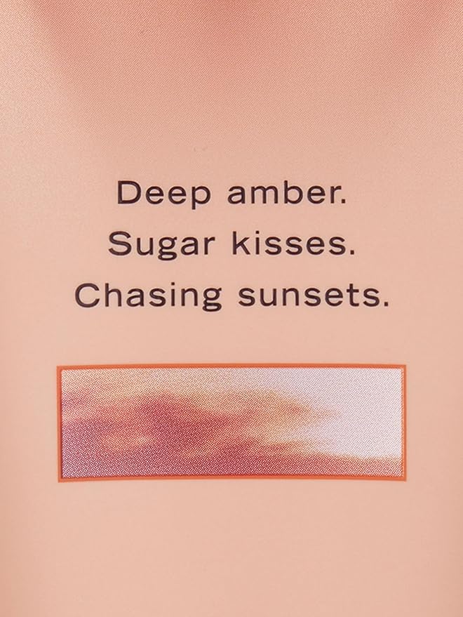 - Smells like deep amber, sugar kisses, and chasing sunsets.