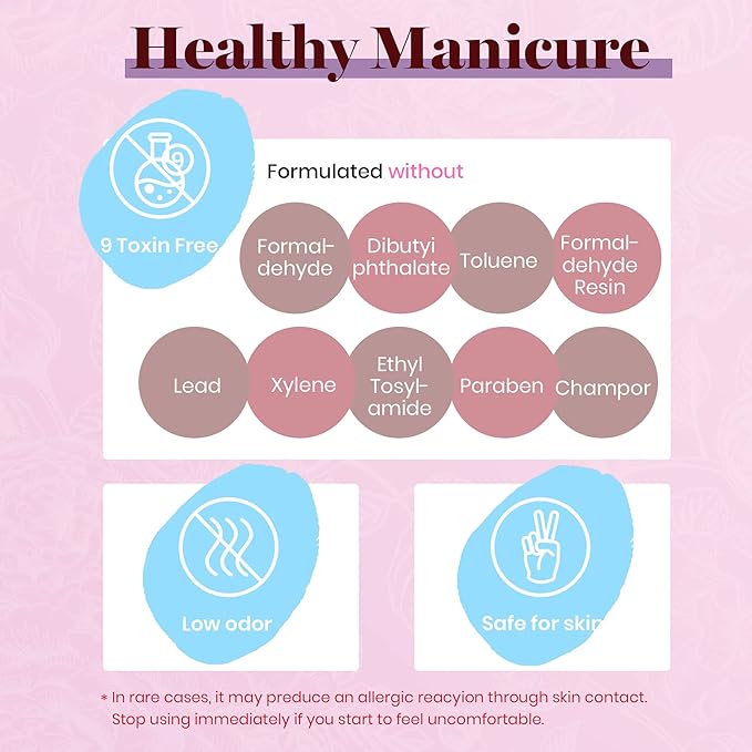 - WARNING: May produce an allergic reaction by skin contact. Read directions for use carefully. For professional use only. Only used for nails. Avoid contact with eyes, mouth, and skin. Rinse them immediately should the product come into contact with them. If there is any incident, contact the doctor immediately. Stop using the product if redness and itching develop. If symptoms persist, consult a doctor. Keep out of the reach of children.