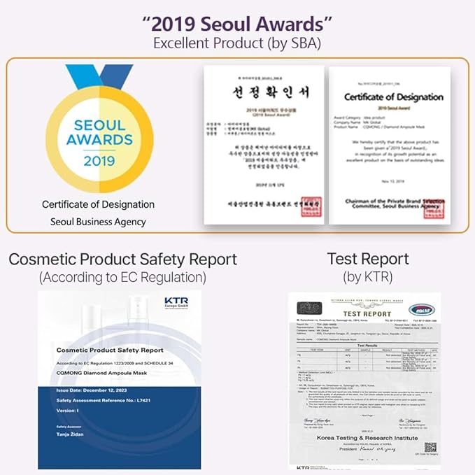 - [Safety] Sensitive skin is also safe to use., Exclusion of animal, harmful ingredients (NO ! Paraben / Benzophenone / Triethanolamine / Alcohol / Fragrance / Cruelty Free, etc), Manufactured in ISO International Certification Acquisition Factory -> One Pack per Day, OK * Completed MoCRA Registration, Cosmetic Product Safety Report according to EC Regulation(Safety Assessment Reference No. : L7421) * “2019 Seoul Awards” :Excellent Product (by SBA in Korea)
