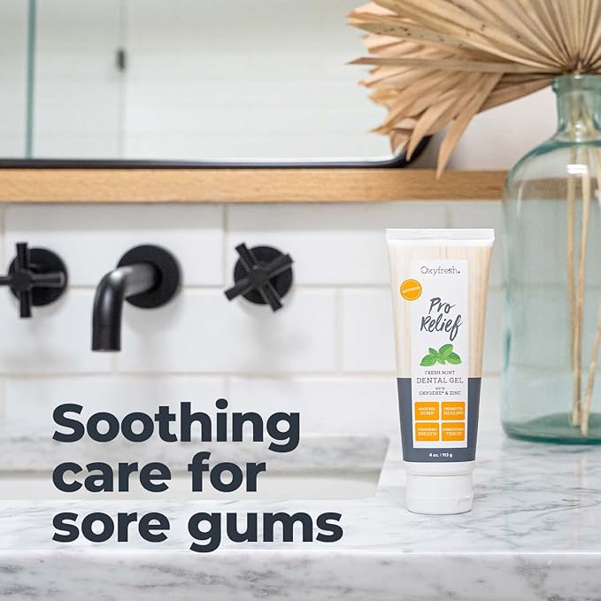Oxyfresh Pro Relief Fluoride Free Dental Gel with Zinc and for Soothing Irritated Gums and Support Gum Health – Infused with Aloe Vera, Chamomile and Xylitol – Dentist Recommended - 4 oz