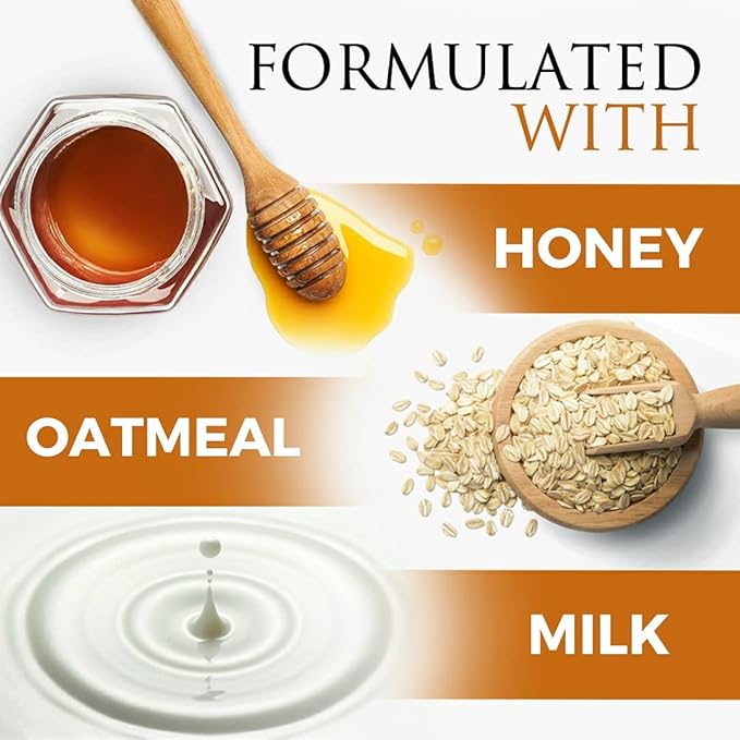 - OATMEAL, MILK & HONEY BODY BUTTER LOTION : In our Oatmeal, Milk & Honey blend, we've harmoniously merged the rejuvenating essence of oatmeal with the soothing aroma of honey. Experience the tranquil benefits of our body butter cream as it lavishes your skin, while its indulgent scent serenades your senses, enveloping you in a state of blissful calm.