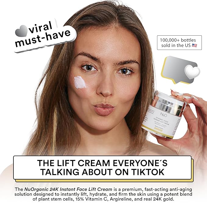 nuorganic 24k Instant Face Lift Cream - Advanced Anti-Aging Moisturizer with Plant Stem Cells for Youthful Glow - Cruelty-Free Wrinkle Cream for All Skin - Vegan Beauty Skincare, 50ml 3-Month Supply