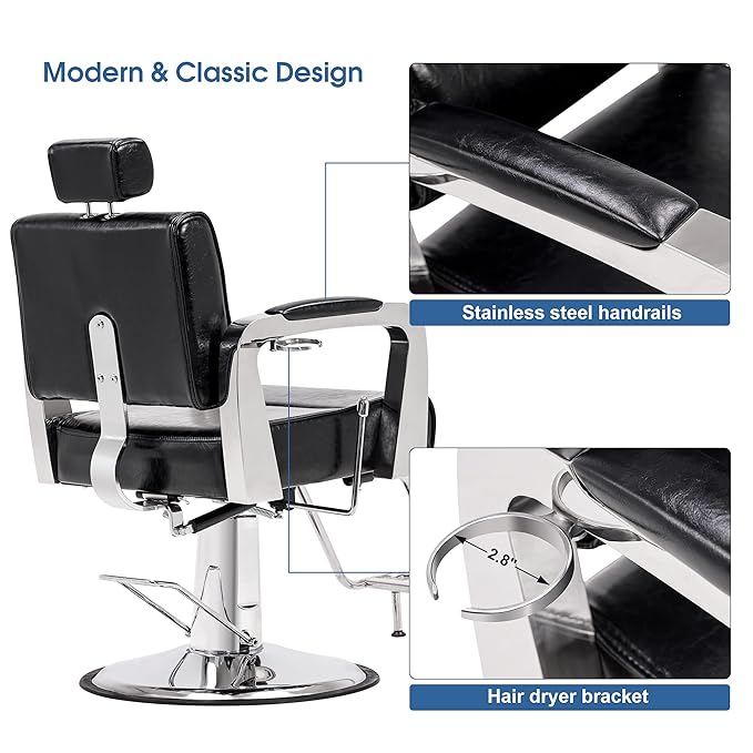- Classic Design: A salon chair fits anywhere with fluent shape and classic look. Special Textured Cortex shows elegance and fashion of the whole look. Modern design with stainless steel decoration of armrest brings superior durability and classic trend to fit different barbershop and salons