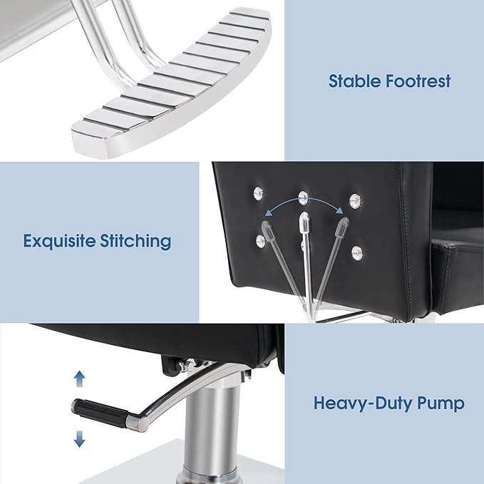 - Antique Design: Welcome look with exquisite stitching brings elegant and antique taste to the whole style of barber shop/salon shop. Hand-made sequins around the stitching, shining acrylic diamond on the backrest and armrest decorates the soft leather, which adds modern elements to the vintage design.