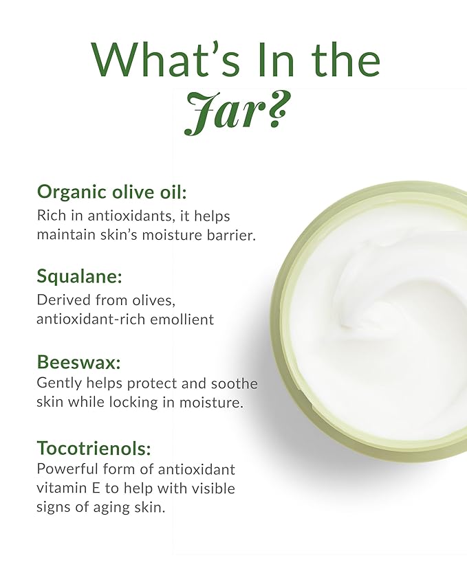 - This nourishing moisturizer features natural botanical ingredients like rice bran oil, squalane and beeswax to provide antioxidant protection and promote skin elasticity. An infusion of our signature 100% organic olive oil sourced in Spain and ultra-purified in Japan produces the ultimate in hydration for soft, radiant skin.