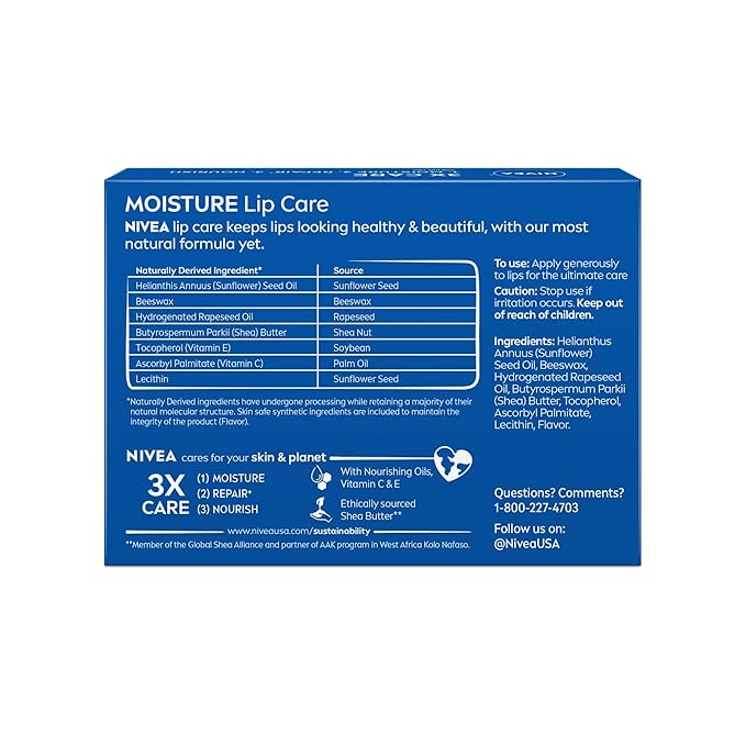 - BULK LIP BALM PACK: This lip balm pack includes four (4) 0.17 ounce sticks of NIVEA Moisture Lip Care, a perfect gift for friends and family or for stocking up