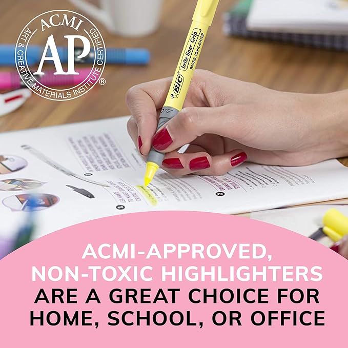 - One 12-count pack of BIC Brite Liner Grip Pastel Highlighters