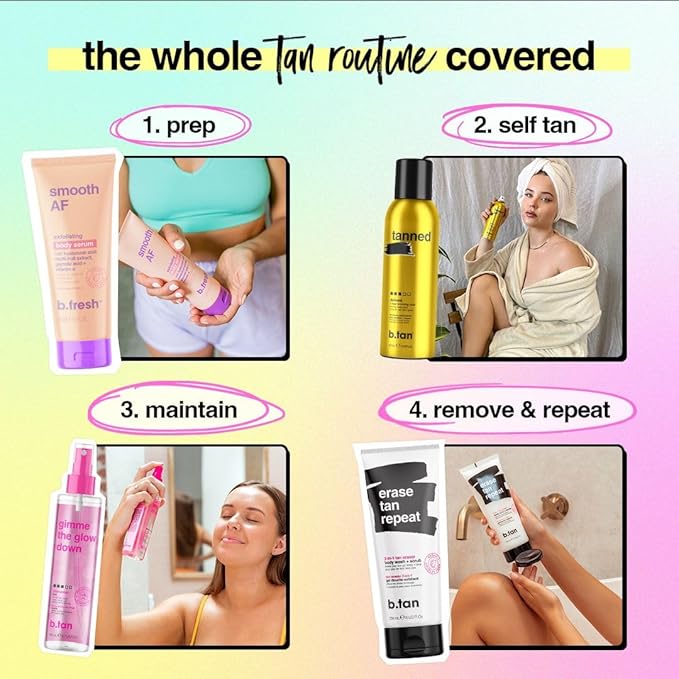 b.tan Self Tanner Bronzing Mist | Fast, 1 Hour Express Sunless Tanning Spray, No Fake Tan Smell, Dark Bronzing Glow, Face & Body, No Added Nasties, Vegan & Cruelty Free, 7 Fl Oz