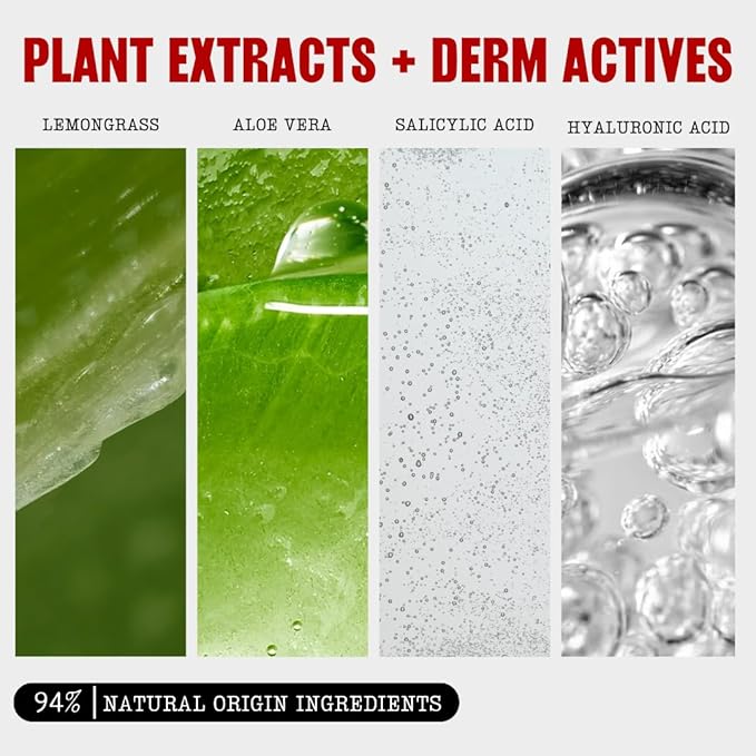 - Salicylic Acid Toner: This acne treatment toner features derm active maximum strength 2% Salicylic Acid and plant extracts Witch Hazel + Lemon Grass + Aloe to immediately soothe skin