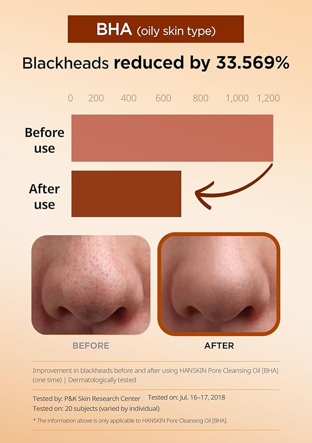 Hanskin BHA Pore Cleansing Oil, Sample Trial Size, Travel Size Mini Makeup Remover Set, Gentle Blackhead Cleanser for Combination and Oily Skin [30 ml/Pack of 3]