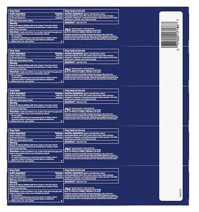 Crest 3D White Advance Whitening Flavoride Anticavity Toothpaste 5 Pack 5.6 Oz Net Wt 28 Oz